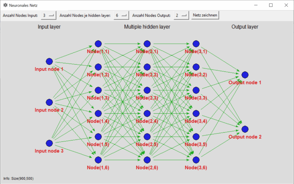 Ein Beispiel hierfür ist das sogenannte Künstliche Neuronales Netz (KNN), was – wie es der Name schon andeutet – der Funktionsweise des menschlichen Gehirns nachempfunden ist: Darin werden viele künstlich miteinander verbundene Neuronen simuliert, wobei jedes Neuron nach dem EVA-Prinzip (Eingabe, Verarbeitung, Ausgabe) agiert. Das KNN besteht aus mehreren Schichten, wobei jedes Neuron aus einer Schicht mit jedem Neuron aus der nachfolgenden Schicht verbunden ist.